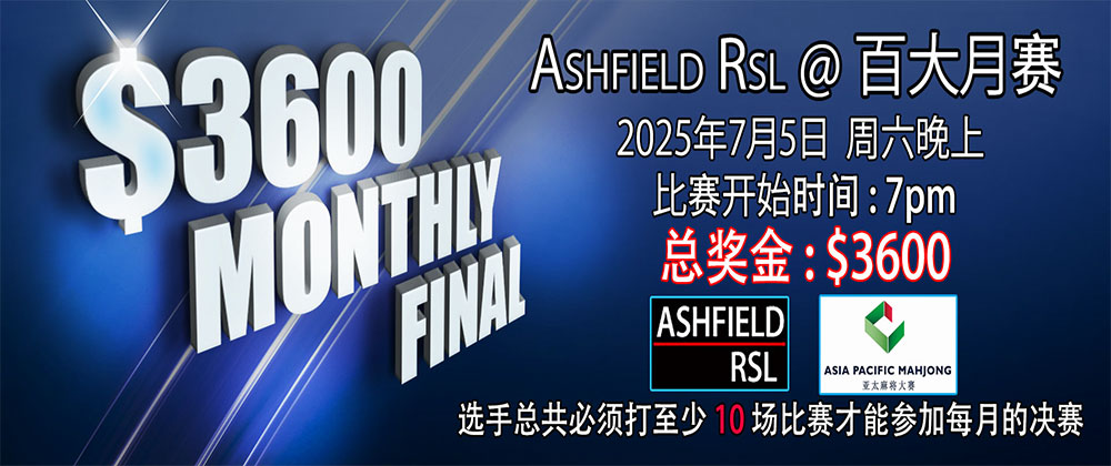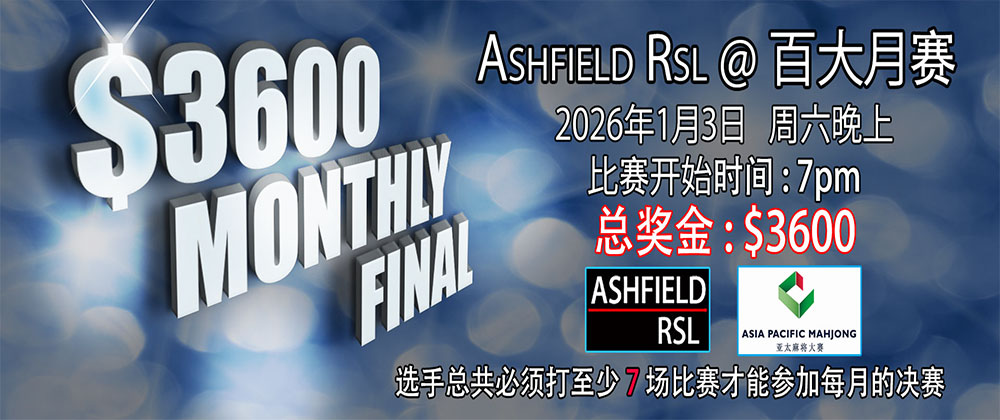 另请注意,9 月 2 日下午和晚上的比赛将在 Ashfield RSL 举行 – 4 Baida Mahjong – 总奖池:$1000